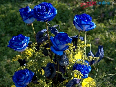 Róże, Kwiaty, Bukiet, Niebieskie, Żółte