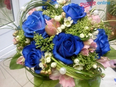 Puzzle Niebieskie, Róże, Bukiet