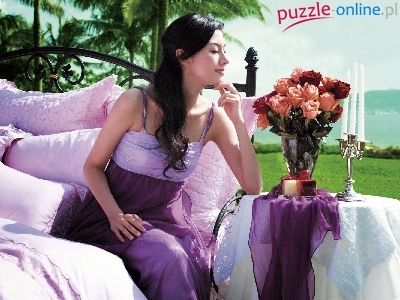 Puzzle Róże, Kobieta, Łóżko, Fiolet