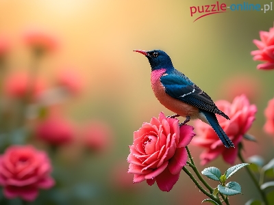 Kolorowy, Róże, Ptak, Grafika, Kwiaty
