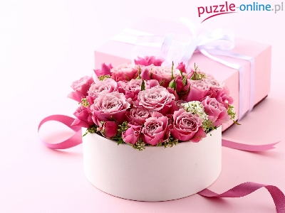 Róże, Prezent, Kompozycja, Różowe, Kwiaty