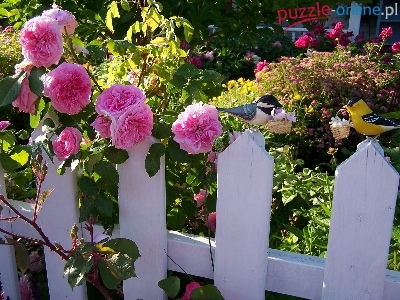 Róże, Płotek, Ogród, Różowe, Biały