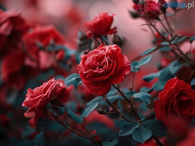 Puzzle Rozwinięte, Kwiaty, Czerwone, Róże