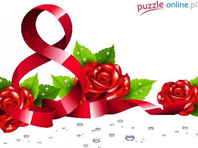 Krople, Róże, Wstążka, Dzień kobiet, Liście, Białe tło