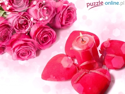 Puzzle Świeca, Walentynki, Róże, Romantyzm