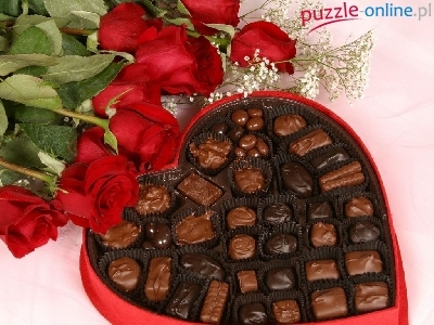 Puzzle Róże, Walentynki, Bombonierka z czekoladkami