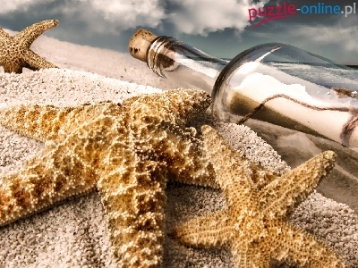 Rozgwiazda, List, Plaża, Piasek, Butelka