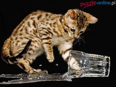 Puzzle Rozlana, Kot, Szklanka, Woda