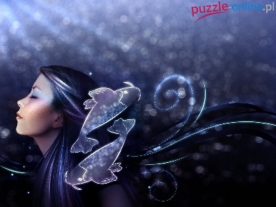 Puzzle Dziewczyna, Rozmarzona, Ryby