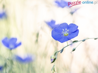 Puzzle Len, Kwiaty, Niebieskie, Rozmycie