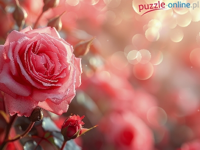 Puzzle Pąk, Róża, Różowa, Rozmycie