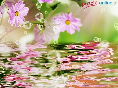 Rozmyta, Odbicie, Kwiaty, Kosmea, Woda