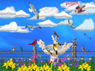 Puzzle Różne, Ogródek, Kwiaty, Ptaki
