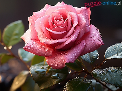 Krople, Róża, Kwiat, Różowa, Grafika, Liście