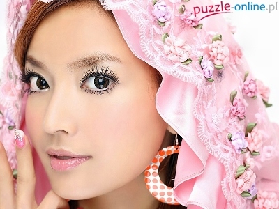 Puzzle Różowa, Dziewczyna, Makijaż, Chustka