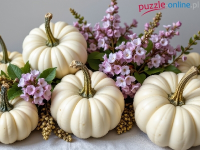 Puzzle Biało-różowe, Białe, Dynie, Kwiaty