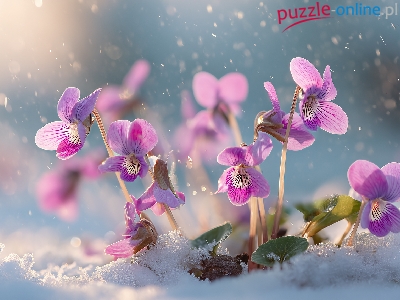 Puzzle Śnieg, Różowe, Fiołki wonne, Grafika