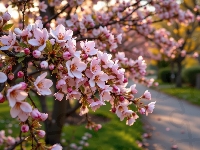 Kwitnące, Różowe, Gałązki, Droga, Kwiaty