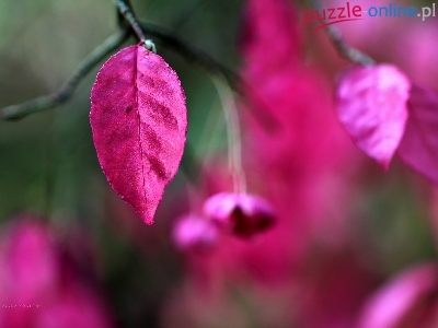 Puzzle Różowe, Trzmielina, Krzew, Liście