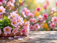 Deski, Różowe, Kwiaty, Grafika AI