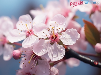 Drzewo owocowe, Kwiaty, Różowe, Krople, Zbliżenie, Gałąź
