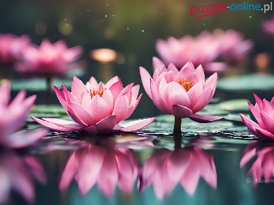 Puzzle Kwiaty, Różowe, Lilie wodne, Grafika