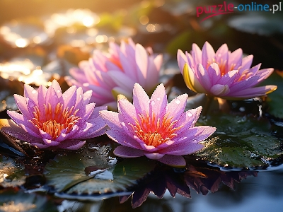Puzzle Liście, Różowe, Lilie wodne, Krople