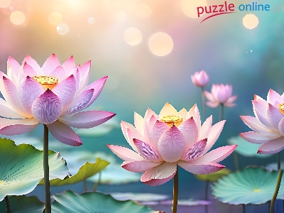 Puzzle Kwiaty, Różowe, Lotosy, Grafika AI