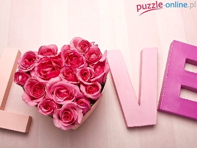 Love, Różowe, Deski, Pudełko, Napis, Serce, Róże