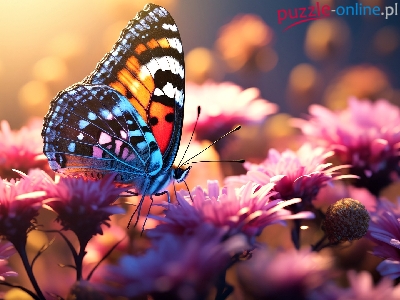 Kolorowy, Różowe, Motyl, Grafika, Kwiaty