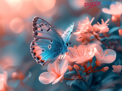 Motyl, Różowe, Niebieski, Grafika, Kwiaty