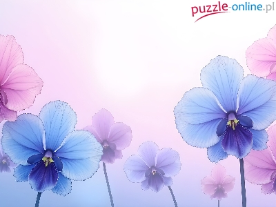 Puzzle Kwiaty, Różowe, Niebieskie, Grafika AI