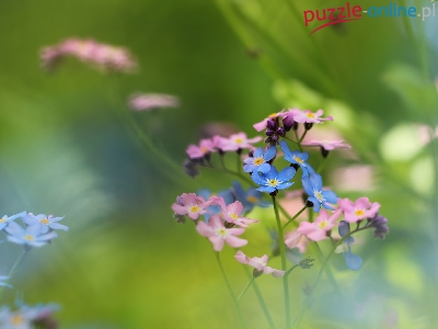 Puzzle Różowe, Niezapominajki, Niebieskie, Kwiaty