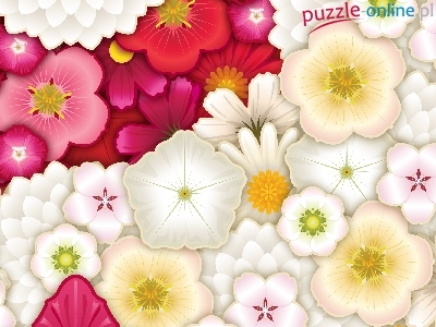 Puzzle Różowe, Białe, Żółte, Kwiaty