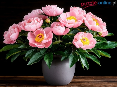 Kwiaty, Różowe, Piwonie, Stół, Wazon