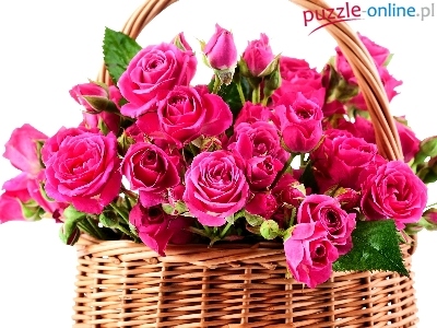 Puzzle Róże, Różowe, Koszyk