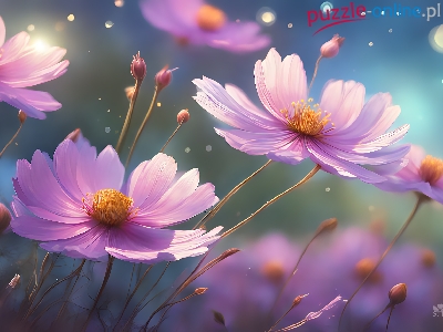 Kosmea, Różowe, Rozkwitnięte, Grafika, Kwiaty