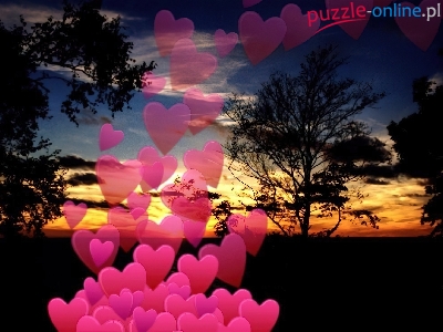 Puzzle Różowe, Zachód, Słońca, Serduszka