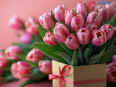 Kwiaty, Różowe, Tulipany, Pudełko, Bukiet