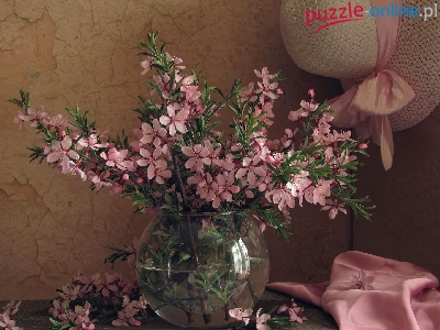 Puzzle Różowe, Kapelusz, Wazon, Kwiatuszki