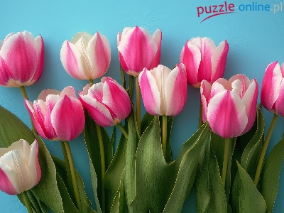 Puzzle Niebieskie, Różowo-białe, Tulipany, Tło