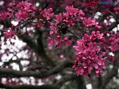 Puzzle Różowo, Kwitnące, Na, Drzewko