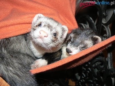 Puzzle Różowy, Dwie, Fretki, Kocyk