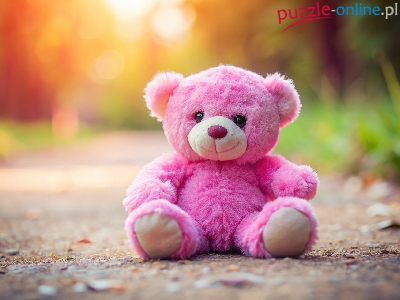 Pluszowy, Różowy, Miś, Grafika, Droga