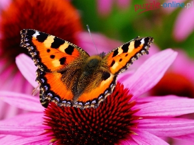 Puzzle Różowy, Piękny, Motyl, Kwiat
