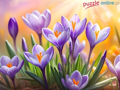 Fioletowe, Rozświetlone, Krokusy, Grafika, Kwiaty