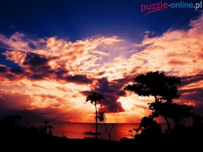 Puzzle Rozświetlone, Zachód, Słońca, Chmury