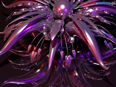 Rozświetlony, Grafika 3D, Fioletowy, Kwiat