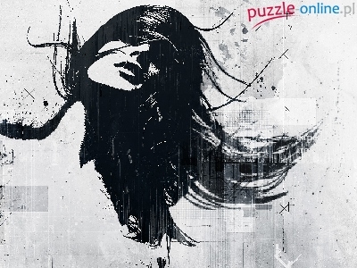 Puzzle Rozwiane, Kobieta, Szkic, Włosy