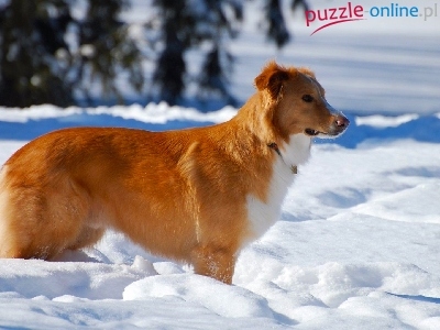 Puzzle Rudy, Zima, Śnieg, Pies